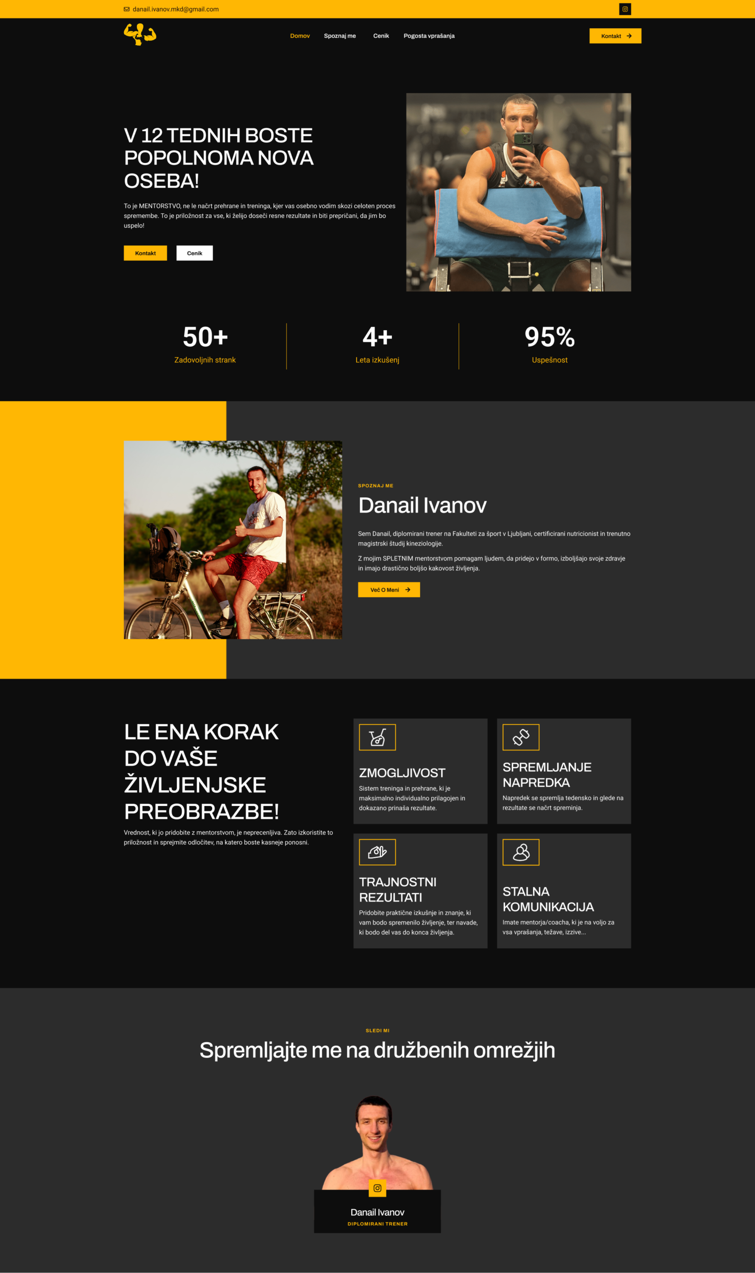 Danail je osebni trener, ki je prej stranke pridobival predvsem prek Instagrama in ust do ust. Čeprav je bil na družbenih omrežjih dosledno aktiven, je pogosto izgubljal potencialne stranke, ker ni imel jasne in profesionalne spletne strani, kjer bi ljudje lahko hitro razumeli njegove storitve.